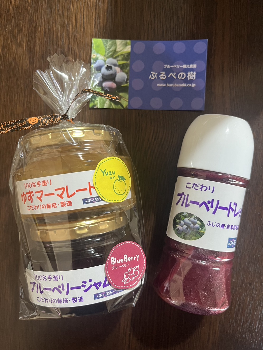 今回は、ブルーベリージャムとゆずマーマレード、ブルーベリードレッシング、そしてブルーベリーキャンディ。