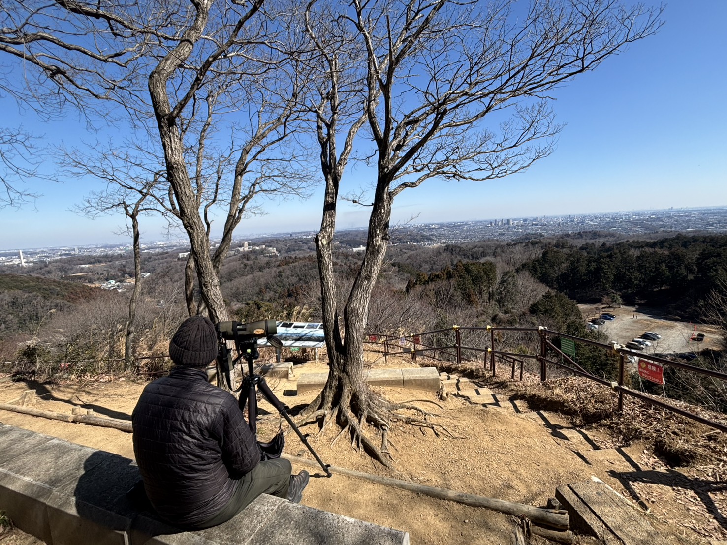 2月の後半、この日は少し春霞がかかっていて、遠くの街並みは柔らかく白んでいました。
