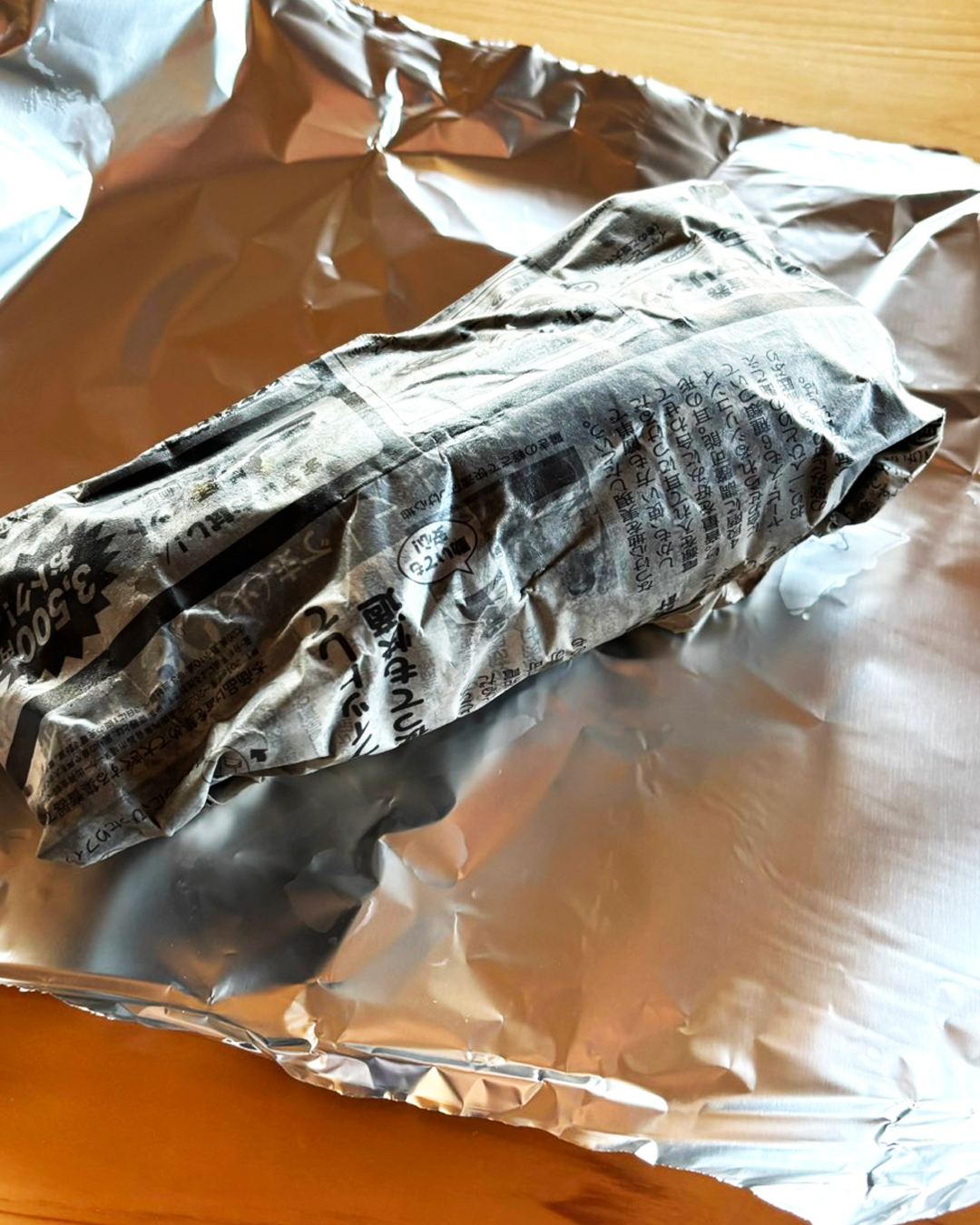 ブログを読んでくれている知り合いから、「美味しく焼くための裏技はありますか?」と聞かれました。特別なことではありませんが、私がいつもしているのは、濡らした新聞紙で包み、その上からアルミホイルで包む、ほんの小さなひと手間です。