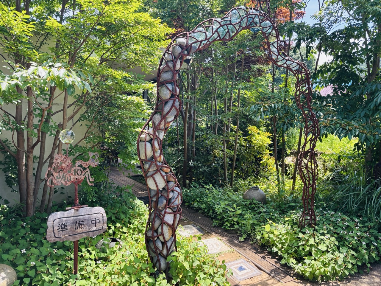 お店に到着してまず視界に入るのが、入り口に佇む幻想的なオブジェやゲートです。これらは芸術家の中里繪魯洲さんが手がけた作品とのこと。何度訪れても、一歩足を踏み入れる前から、まるでどこかのアトリエやギャラリーを訪れたかのような新鮮な高揚感に包まれます。