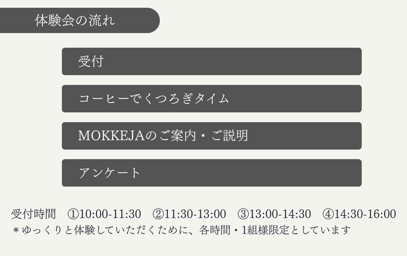 2026年2月、MOKKEJAでの生活を体験していただく見学会を企画しました。